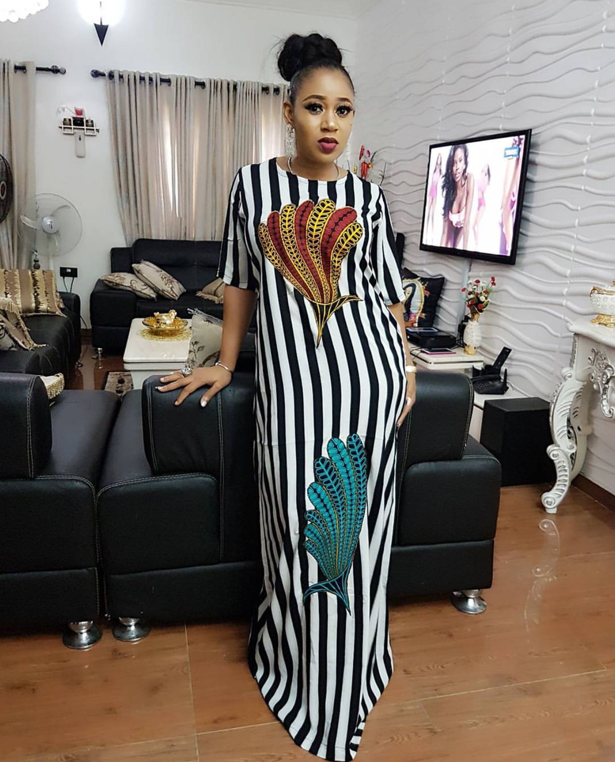 2020 Fashion Women Black And White Stripes Maxi Dress Design