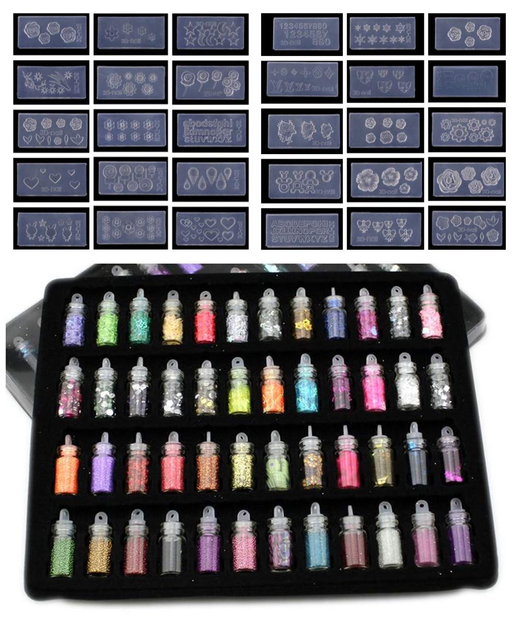 Amazon Com Xichen 48 Color Glitter Silicone Mold Nail Art (XICHEN 48 color glitter + silicone mold Nail Art Decoration, Nail Art Designs, 3D Nail Glitter,Nail...)