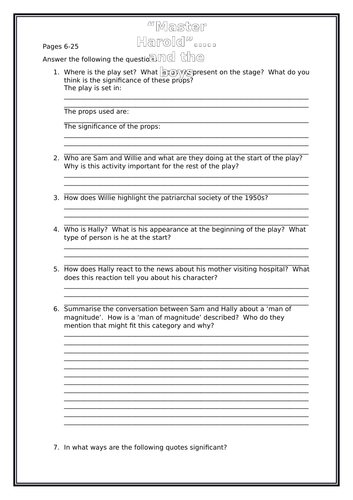 Master Harold And The Boys Comprehension And Analysis Bundle